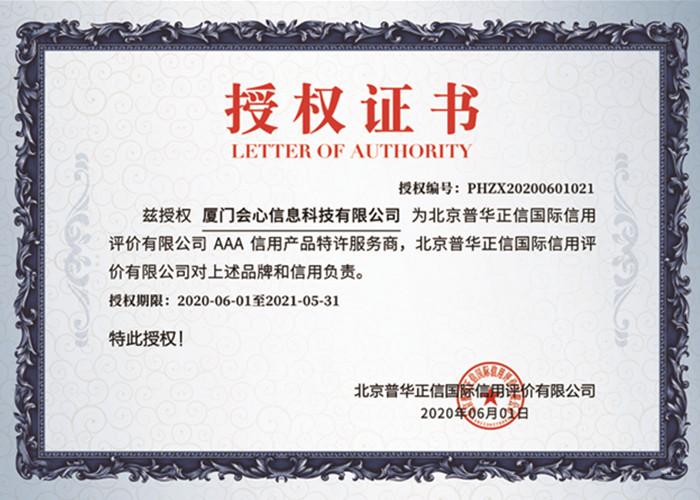 AAA信用產品特許服務商授權證書