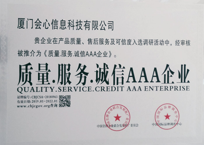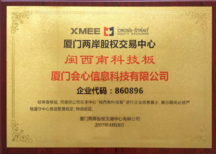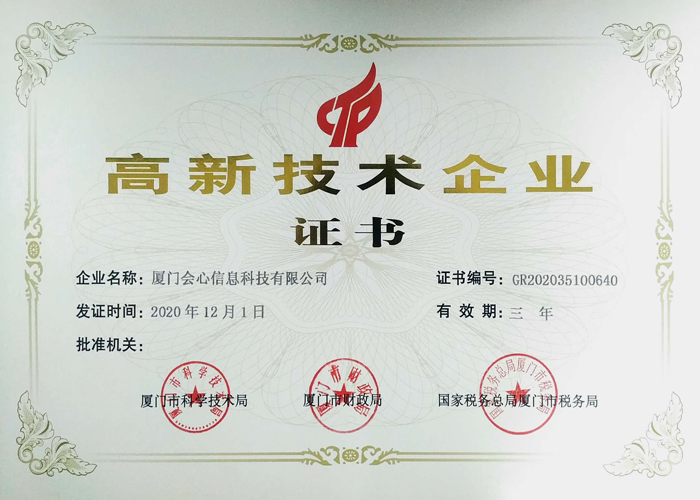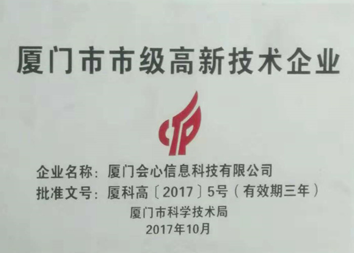 會心科技通過自主研發不僅擁有國家認證的68項軟件著作權,并獲得了廈門市科學技術局2016年以至2018年研發經費補助津貼,以及在2017年4月,在兩岸股權交易中心成功掛牌。2017年10月,獲得國家級高新技術企業認定和廈門市市級高新企業認定。2018年10月,獲得職業健康安全管理體系認證證書。2019年1月,獲得《質量·服務·誠信AAA企業》證書,2019年10月,在閩西南科技板成功掛牌。2020年至2023年連續獲得連續獲得科技型中小企業認定。